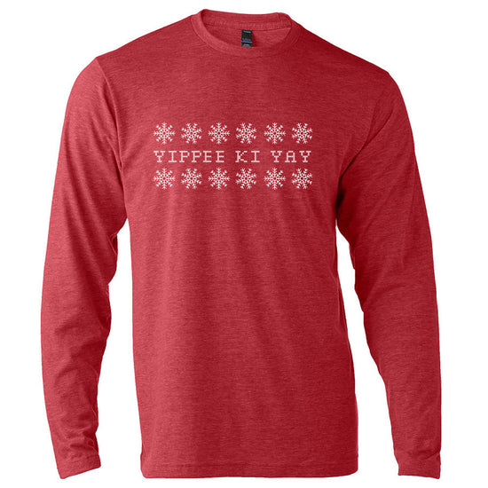 This holiday edition of Yippee Ki Yay from Die Hard fame is available on a variety of Unisex items. All soft, all great quality! Items are screen printed by hand at our shop in Westerville, Ohio with water based environmentally friendly ink.